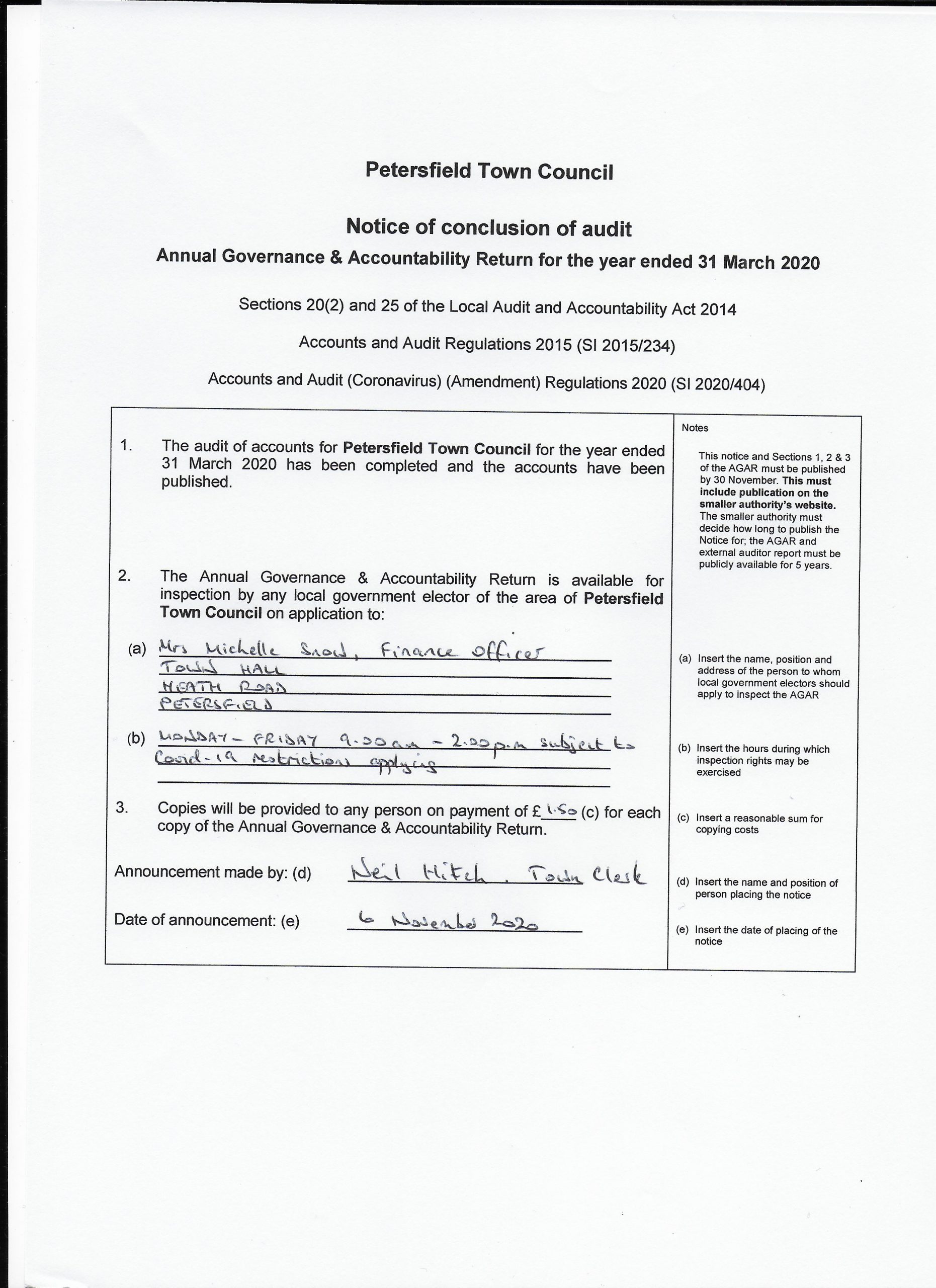 Notice of Conclusion of Audit 2020/21