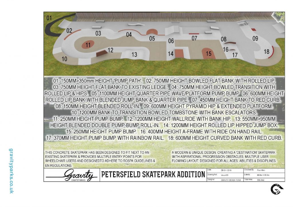 Petersfield skatepark is a great local park with a bit of something for everyone. The two sections are well designed and separate to prevent clashes. There are a lot of bumps and corners to pump around in the bowl and the street section has a decent selection. Overall, this is a good place for beginners and experienced skaters alike.
