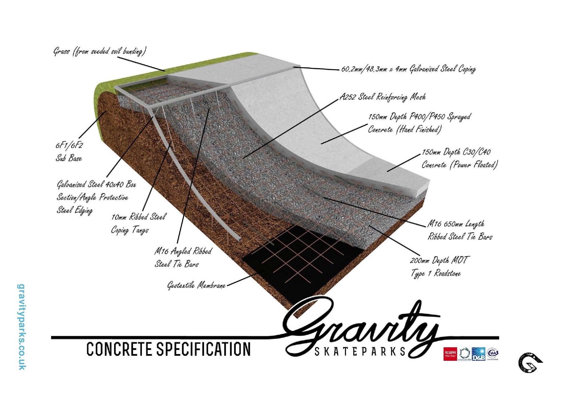 The street section here starts on one side with a quarter pipe that leads into a double ledge set and following this is a wave ledge. After these is a flat rail next to a flat bank on a raised level that has a ledge and manny pad on top and a flat bank leading down to the lower level. The run then finishes with a flat bank with euro gap and rail.